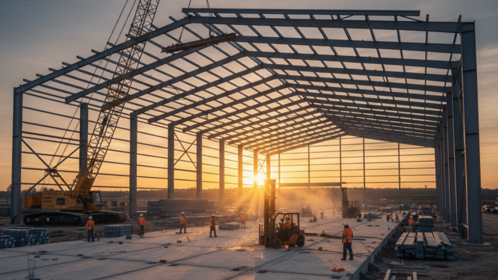 At SN Constructions, we specialize in the design, fabrication, and erection of industrial sheds and steel buildings that combine strength, functionality, and long-lasting performance. From manufacturing units and storage facilities to large-scale workshops and loco sheds, our structures are engineered to meet the diverse needs of industrial, commercial, and infrastructure projects.
